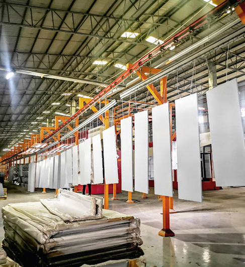 抗震、抗風:擁有全數(shù)控轉(zhuǎn)塔沖床15臺,折彎機近60臺,剪板機30臺,雕刻機20臺;專業(yè)的厚板(1.0-4.0mm)零色差生產(chǎn)工藝,涂層質(zhì)量達到進口鋁單板水平;